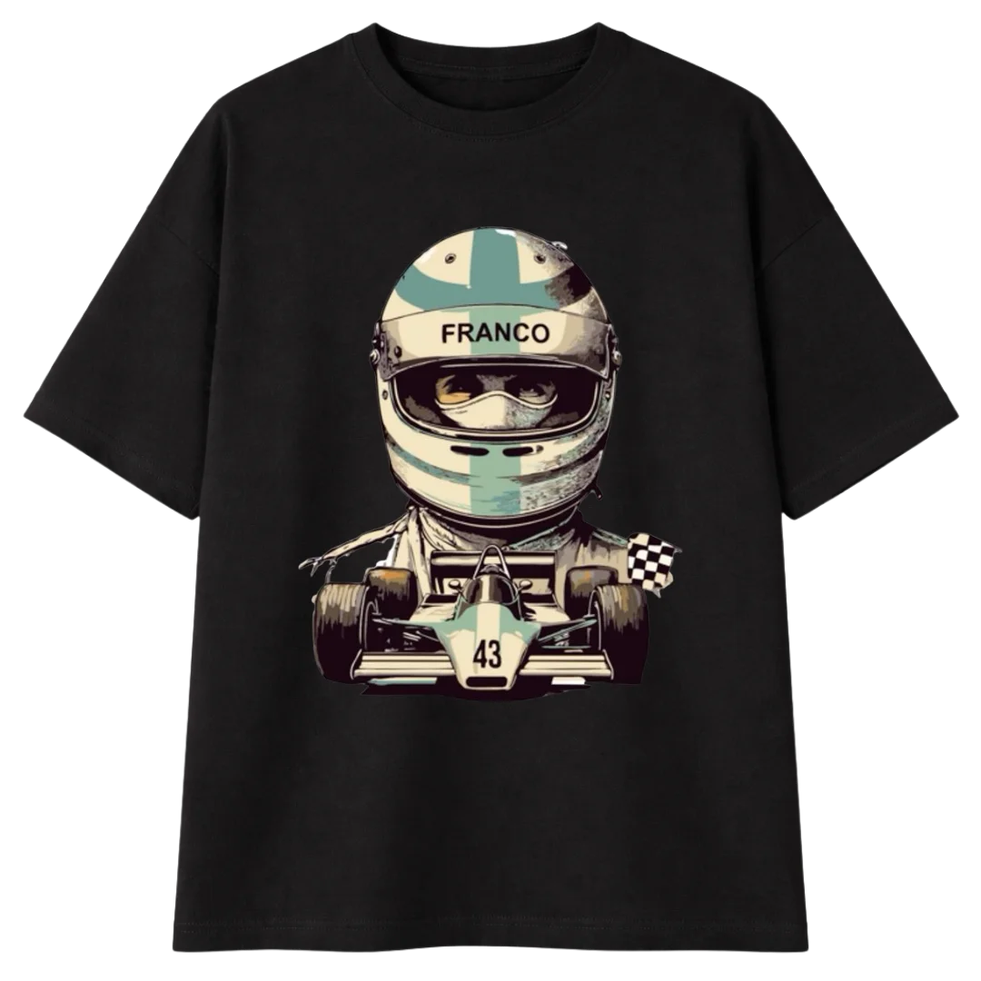 De repente todo es una recta, una curva o una maniobra dudosa. Vos tranquilo, es la remera. Oversize, cómoda y con suficiente mística como para hablar de carreras sin que nadie te frene.